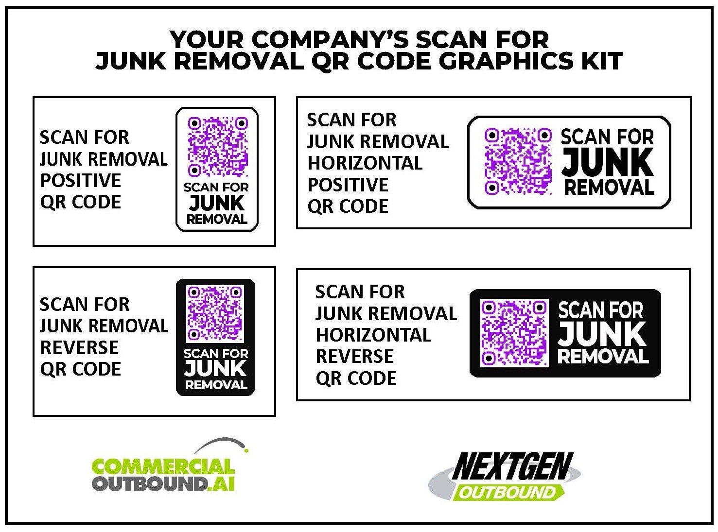 An Exclusive ‘Scan for JUNK REMOVAL’ QR Code W/Multiple Graphic Options So That You Can Use It On All Of Your Sales, Marketing And Promotional Materials
